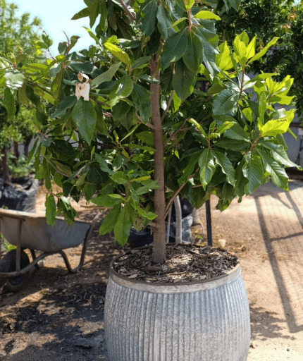 Magnolia grandiflora במיכל ברזל מעוצב – דגם דולי רקועים