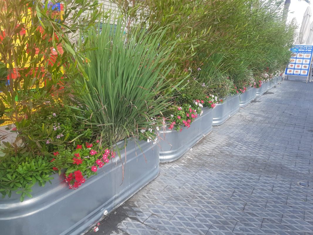 המיכלים שלנו עמידים בכל מצב ומזג אוויר, במיכלים של רוחב 40 ס”מ ומעלה ניתן לייצר תחימה עשירה בצמחייה – כך שהמיכלי יתאים ל-2 צידי הרחוב התחום.